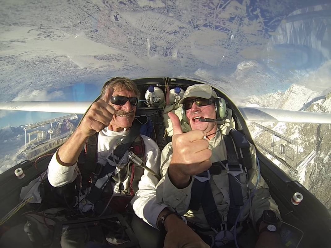 Klaus Ohlmann (68) is a six-time world champion and, with over 60 world records, the most successful glider pilot of all time. After his successful practice as a dentist he runs his own mountain flying school "Quo Vadis" in southern France. (wikipedia.org/wiki/Klaus_Ohlmann).