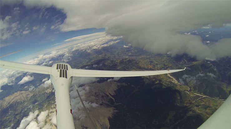 The jetstream is a strong band of wind which undulates as it flows over the mountains. Much like a surfer rides a wave on the sea, Klaus uses the updrafts of air to gain altitude in the glider and reaching speeds of 400 kilometres per hour.